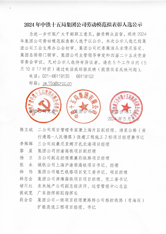 2024年中鐵十五局集團公司勞動(dòng)模范擬表彰人選公示