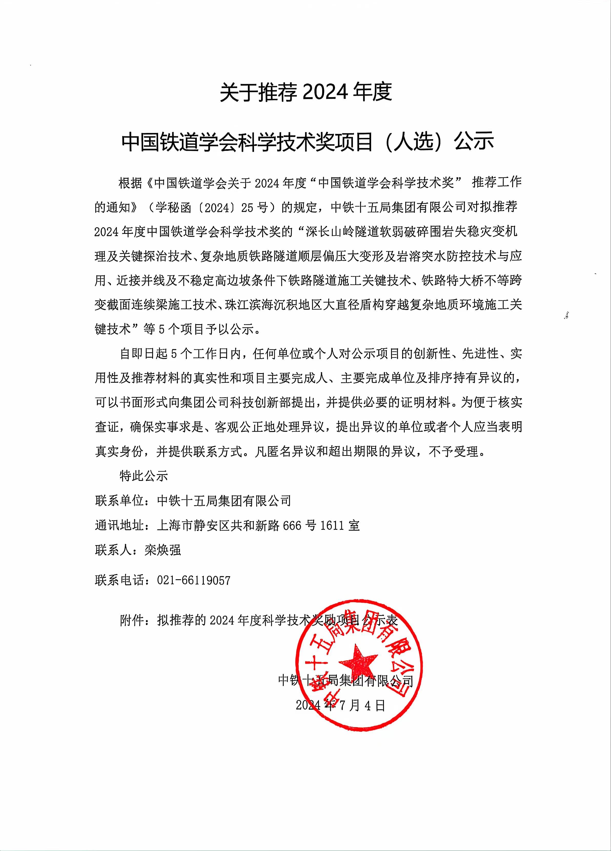 關(guān)于推薦2024年度中國鐵道學(xué)會(huì )科學(xué)技術(shù)獎項目(人選)公示